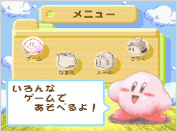 Wii本体の電源を入れたら、Wiiメニュー画面で『カービィのきらきらきっず』のチャンネルを選んでください。 |