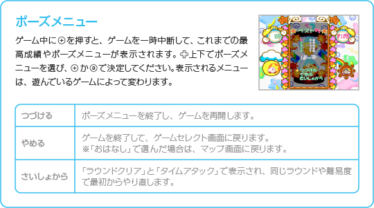 基本的な遊びかたは、5つのゲームで共通です。 |