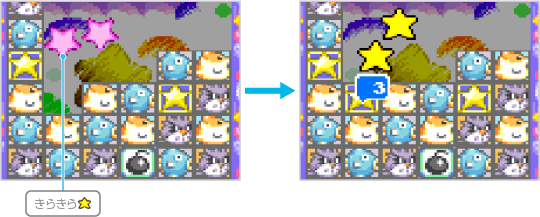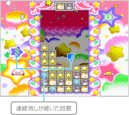 連続消しが終わると、連続消しが続いた回数に応じて「きらきら ![]() |
