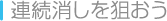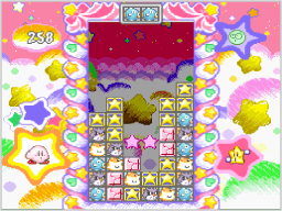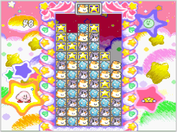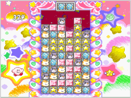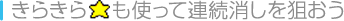 | ブロックをたくさん積み上げるほど、連続消しができやすくなりますが、真ん中の2列どちらかが一番上まで積み上がるとゲームオーバーになってしまいます。真ん中にブロックを積みすぎないよう注意してください。対戦時に相手が連続消しを始めたときは、相手の連続消しが終わる前に真ん中の2列のブロックを消しておくと、ゲームオーバーになりにくくなります。 | ![]() |