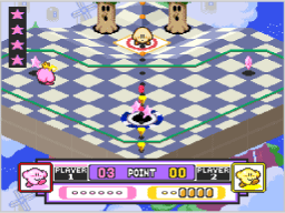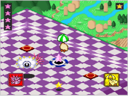 「2PLAY GAME」では、カップインした時点での星の数が集計されます。敵を倒して星を獲得しても、途中で相手が星に当てると取られてしまうので、相手の動きや星の位置をよく見て作戦を立てましょう。相手に多くの星を取られているときは、横取りしてからカップインしてみるのもいいかもしれません。 |