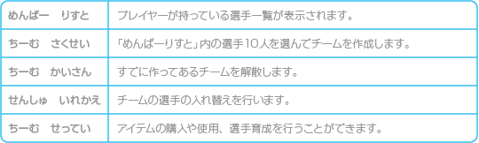 自分のチーム10人の中から、レギュラーを決定します。 |
