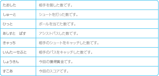 試合が終了すると、以下の内容が試合結果として表示されます。 |