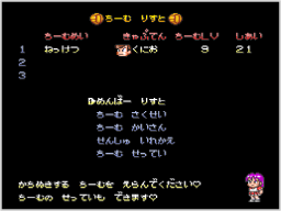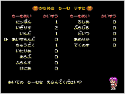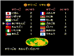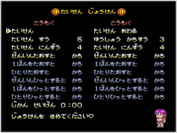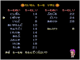 対戦相手となるチームを選択します。「かいすう」の項目には、そのチームに勝利した回数が表示されます。 |