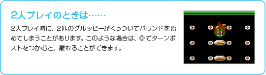 を押すとグルッピーがその方向に手をのばし、ターンポストをつかみます。