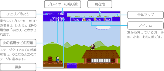 敵の攻撃に気をつけながら、ステージを進んでいきましょう。ステージの一番奥まで進むとクリアとなり、次のステージに進みます。なお、全体マップにはカン太郎の現在地が表示され、全ステージ中どこまで進んだかがわかります。