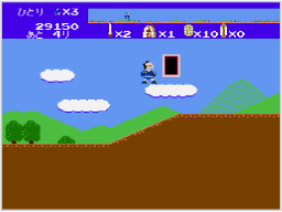 小判を10枚集めると、特定の場所にワープゾーンが出現します。 ワープゾーンに入ると特別なステージに移り、奥まで進むとクリアとなって、いくつか先のステージに移動できるので、探し出してみましょう。 |