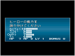 次に主人公とパートナーの能力を設定します。5つの項目に対して、15ポイントを自由に振り分けます。