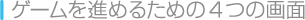 このゲームでは、おもに4つの画面を使って進めます。 ![]() |