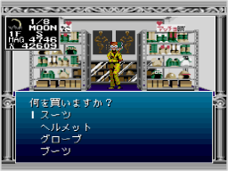 防具を扱っています。「女神転生II」では男性用、女性用にお店が分かれています。 |