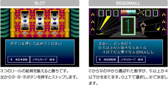 さまざまなミニゲームを遊ぶことができます。勝つとマッカ(お金)やアイテムが手に入ります。 ![]() ![]() |