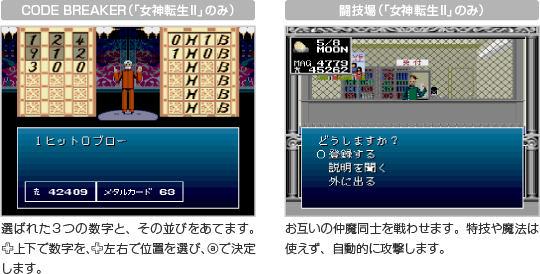 「女神転生I」では剣、「女神転生II」ではガンを扱っています。 |