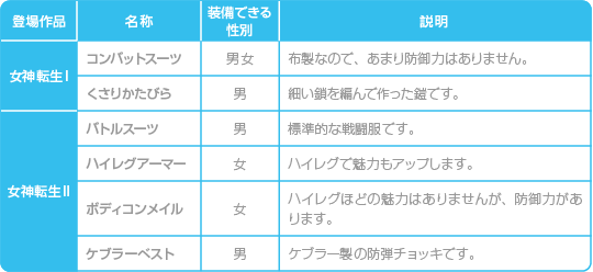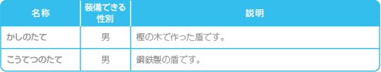 敵の攻撃から身を守ります。一番重要な防具です。 ![]() |