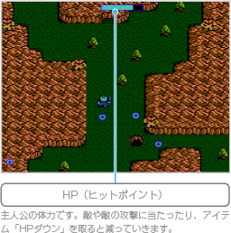4人の主人公を1人ずつ操作し、アイテムを取ってレベルを上げながら4つのステージを順番に進みましょう。画面は縦方向に自動的にスクロールしていき、ステージの奥までたどり着くと次のステージに進みます。4つのステージを終えると最終ステージが始まり、奥にいるドラゴンを倒すとクリアとなります。
