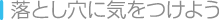 ステージでは、突然落とし穴が現れることがあります。この落とし穴にはまってしまうとしばらくの間動けなくなり、敵からの攻撃をよけられなくなってしまいます。ステージのどこに落とし穴が隠されているのか、チェックしておきましょう。 |
