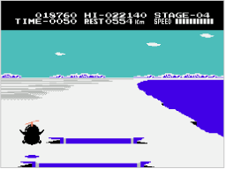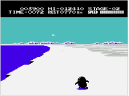 カーブがあるところでは、ペンギン君が外側に流されてしまいます。 |