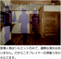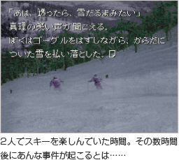 楽しめるソフトのことです。美しい映像とリアルな効果音……紙では表現できない演出が、プレイヤーを物語の世界へと深く引き込みます。 1994年11月25日に発売された本作は『弟切草』に続く2作目のサウンドノベルで、多くのプレイヤーの支持を得ました。未体験のプレイヤーはもちろん、かつて体験したプレイヤーも、またあの冬山での恐怖の夜を味わってみませんか? |