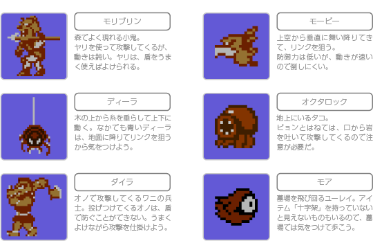 『リンクの冒険』に登場する敵キャラクターの一部を紹介します。
