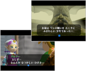 | ゲーム中に登場する人物の名前が、ディスクシステムソフト『リンクの冒険』に出てくる街の名前と同じだったり、『神々のトライフォース』で語られる昔話に似たような展開があったりと、これまでのシリーズをやってきた人を楽しませてくれる仕掛けが登場します。このほかにも、ファンなら思わずニヤリとしてしまう小ネタがあるかもしれません。 | ![]() |