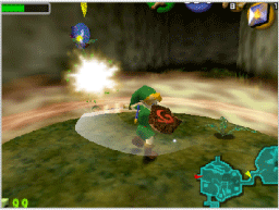 を押すと、回転しながら体当たりができます。回転アタック中は飛んできたものをはじくなど、盾をかまえたときと同じ効果を得ることができます。