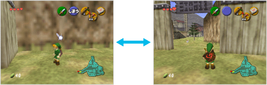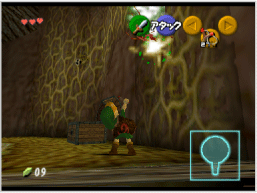 を上に倒すと、主人公のパートナーである妖精ナビィから、アドバイスなどを聞くことができます。