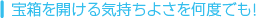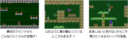 いろいろなゲームの中で登場する「宝箱」は、どんな作品においても開けるときのワクワク感がたまりません。中に入っているアイテムを手に入れられることはもちろん、どんなものが入っているのか想像したり、開ける行為そのものでも楽しめるのではないでしょうか。そんな宝箱の楽しみが、あちこちにたくさん用意されているのが『マイティボンジャック』なのです。 ![]() |