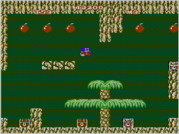 通路では、爆弾や宝箱の宝を取りながら出口をめざしましょう。出口を出ると次の通路や王家の部屋へ進みます。 |