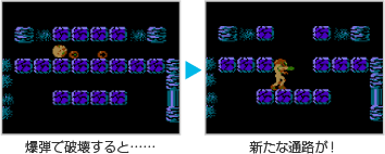 パワーアップで変化するのはサムスの強さだけではありません。新たな能力によってゲート(扉)を開けることが可能になったり、新たな通路を進むことができるようになるなど、行ける場所がどんどん増えていきます。かつて訪れた場所にもう一度訪れてみると、また新たな発見があるかも……!? |