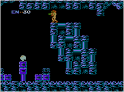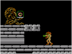ゲームの進行に行き詰まったときは、取り逃したパワーアップアイテムがないか、今までのステージにもどって確認してみましょう。パワーアップアイテムを取ってサムスのアクションを増やすと、これまで進めなかった場所へ進めるようになるかもしれません。 |