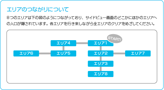 メタル・アタッカーやケインを操作して敵を倒し、全部で8つあるエリアをクリアしてください。エリアのどこかにいるボスを倒すとエリアクリアになります。 |