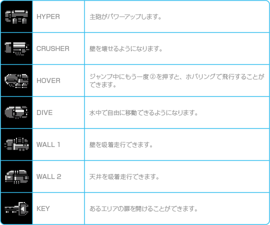メタル・アタッカーのオプションは、ボスを倒すと手に入ります。オプションを手に入れると、サブ画面に手に入れたオプション名が表示されます。