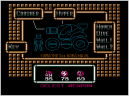 を押すとサブ画面が表示され、手に入れたメタル・アタッカーのオプションを確認したり、ウエポンを装備したりできます。
