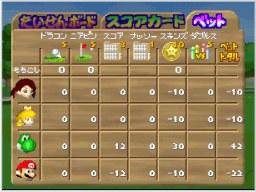 『マリオゴルフ64』には10種類ものゲームモードが用意されています。基本的なゴルフのルールでホールを回っていくモードだけではなく、リングにボールを通しながら進むハイレベルなモード、パター1本を使って手軽に遊べるモードなどなど……。多彩な遊びかたが楽しめます。 ![]() |