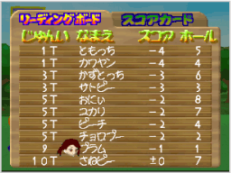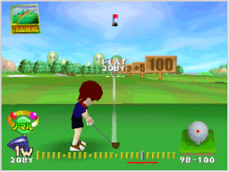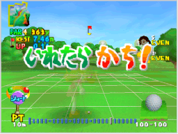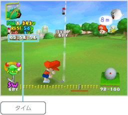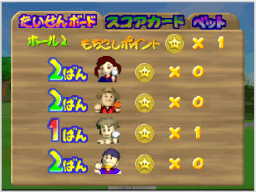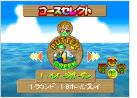 壁に囲まれた専用のコースを使い、パッティングでのみプレイするモードです。コースセレクト画面では、 なお、このモードは1ホールを9打数以内でクリアできないとギブアップになります。 |