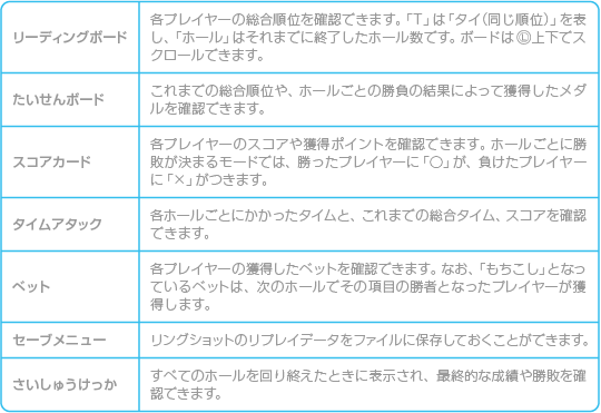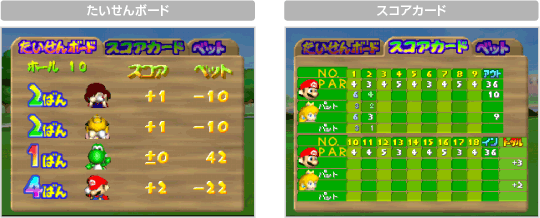 ホールでのプレイが終了すると、結果画面が表示されます。