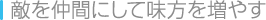 プレイヤーの仲魔は、会話で説得することで増やすことができます。悪魔は全18種族がいて、それぞれ砂漠での移動が得意、空を飛ぶ敵に大ダメージを与えるなどの特徴があります。特徴の異なる仲魔を増やすことで、さまざまなマップや敵に対応することが可能です。 ![]() |
