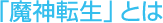 | 『魔神転生』は1994年1月28日に発売されたシミュレーションロールプレイングゲームです。近未来の日本を舞台に、ゴブリンやピクシー、オルトロスといった仲魔(仲間の悪魔)を使役し、敵の悪魔を倒していきます。 | ![]() |