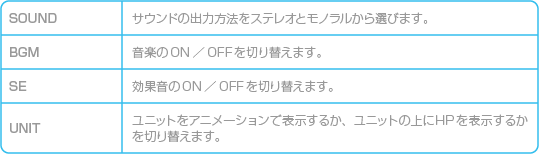 ※「セーブ」は、プレイヤーのユニットがすべて未行動のときのみ選べます。 |