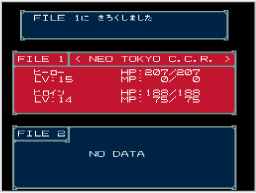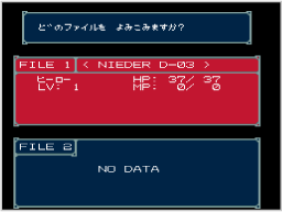 ゲームの進行状況を保存(セーブ)します。2つのファイルが表示されるので、いずれかのファイルを選んでください。