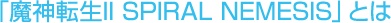 | 『魔神転生II SPIRAL NEMESIS』は1995年2月19日に発売されたシミュレーションロールプレイングゲームです。1995年、冬の東京に突如現れたアクマの軍団。それに対抗する組織(パルチザン)に所属する主人公たちは、仲魔(仲間のアクマ)を使役して、敵と戦っていきます。 | ![]() |