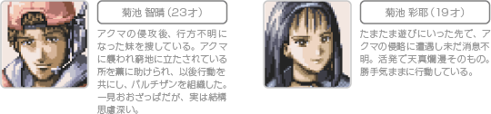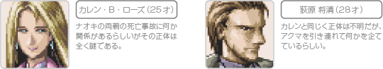 仲間や敵、さまざまなキャラクターが登場します。 それぞれ、アクマと交渉できる、魔法を使えるなどの特徴があります。 ストーリー展開によって、仲間になったり敵として登場したりします。 ![]() ![]() ![]() |