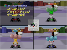 ※本ソフトウェアは1996年に発売されたニンテンドウ64用ソフト『マリオカート64』をWii上で再現したものです。画面に「コントローラパック」に関するメッセージやメニューが表示されますが、本ソフトウェアではコントローラパックに対応しておりません。 |