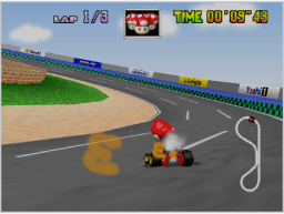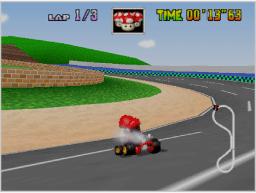 を倒すとハンドルを切ります。大きく倒すほど大きくハンドルを切ることができます。