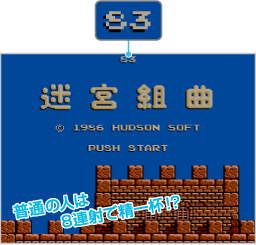 本作のタイトル画面にはちょっとした仕掛けが隠されています。その仕掛けとは「連射測定機能」。10秒間に何回ボタンを連打できるかカウントしてくれる機能です。80年代に「16連射」で名をはせた、あの高橋名人にキミは勝てるかな? |