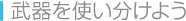 遠くの敵を攻撃したいときは槍や短剣、敵をまとめて倒したいときは斧が便利です。出現した武器をすべて取るのではなく、ステージの構成や敵の位置などに合わせた武器を取って使いましょう。