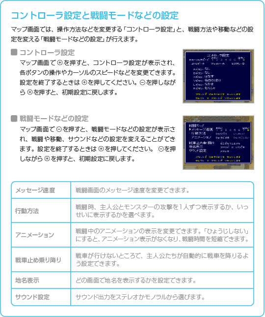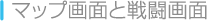 主人公たちは、「マップ画面」でさまざまな場所に移動したり、「戦闘画面」で戦ったりしながら旅を進めます。 ![]() |