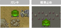 マップ画面には、戦車に乗っていると移動できない地形があります。その先に進みたい場合は、戦車から降り、歩いて移動する必要があります。 |