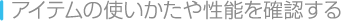 | このゲームには、通常の武器や防具、回復アイテムだけでなく、タオルや石けんといった、何に使うのかわかりにくいアイテムが登場します。「BSコン」の「アイテム」を選ぶと、手に入れたことがあるアイテムの性能や使いかたを確認できます。 | ![]() |