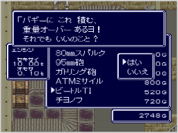 | 戦車に乗っているキャラクターは、基本的に人間用の武器で攻撃できませんが、バギーに乗っている場合のみ人間用の武器を使用できます。バギーに乗ったソルジャーは、苦手な戦車用の武器を使わず、得意な人間用の武器で戦うことが可能です。 | ![]() |
