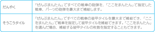 戦車に積んだ砲弾や装甲タイルの補給ができます。 |